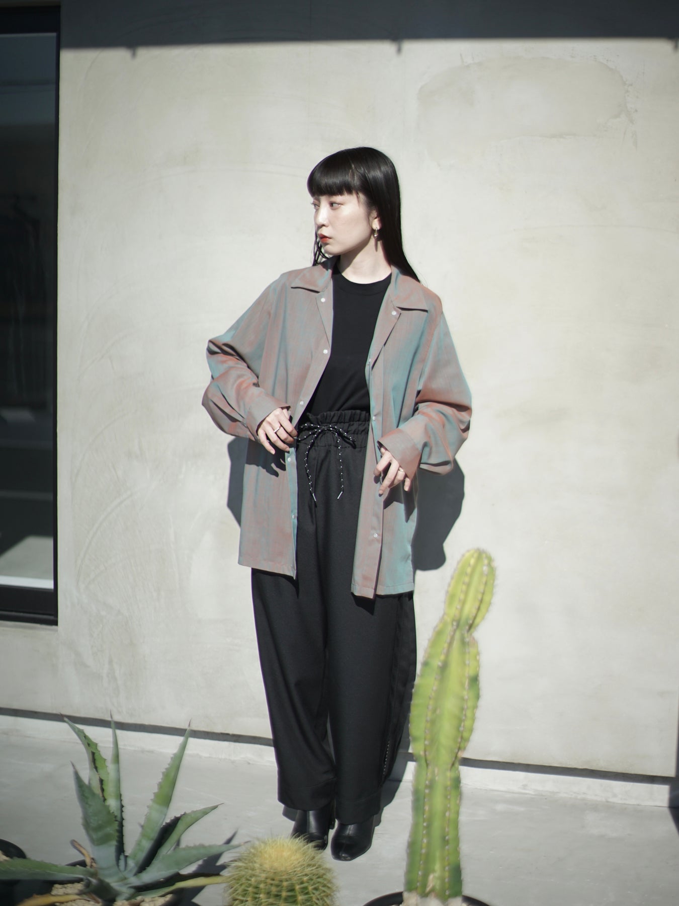素材感をかすため台衿などを省略しミニマルでンプルなデザイン。