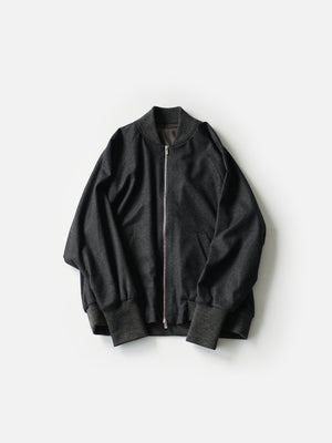 世界三大毛織物の産地「尾州」は葛利毛織工業株式会社の“織機から生まれたレザー調毛織物”を使用したダブルライダースジャケット。