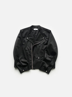 上衿やベルトなどのディテールを省略、「ライダースジャケットである」と認識する限界までミニマルにし、その生地に注視してしまうようなバランスで構築しました。